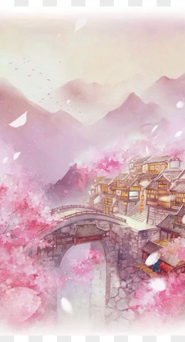 水彩樱花树