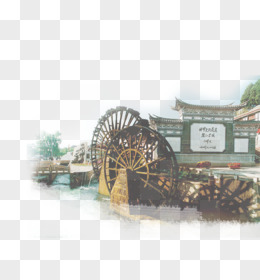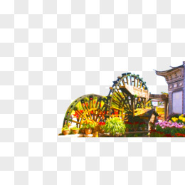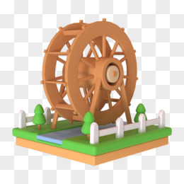 卡通旋转水轮水车小木屋免抠元素