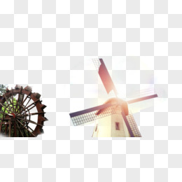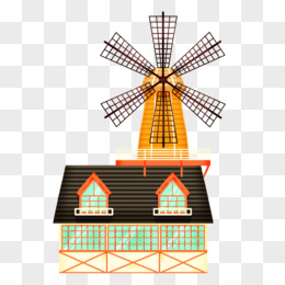 手绘风车房屋小屋建筑素材