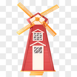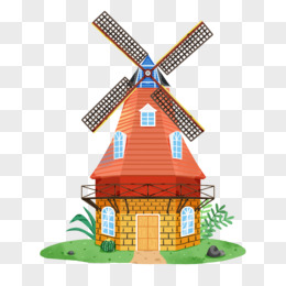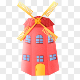 手绘卡通风车建筑风景免抠元素