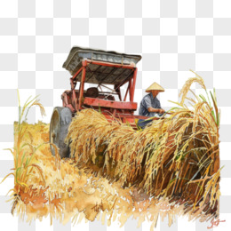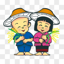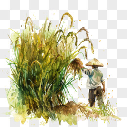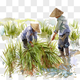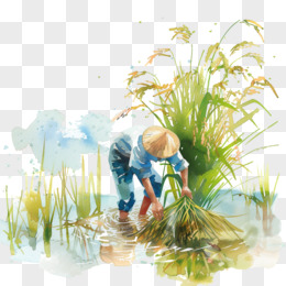卡通风格稻田种植水稻的美丽女孩免抠元素