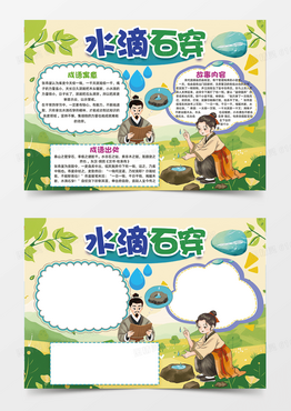 水滴石穿寓言故事大道理成语故事手抄报绿色
