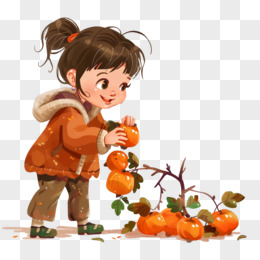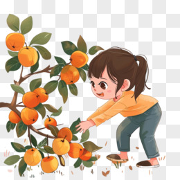 秋天收柿子免抠元素