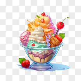 手绘卡通一个玻璃碗里放着芒果丁和蓝莓水果捞免抠元素