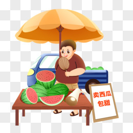 手小贩摊卖西瓜插画素材