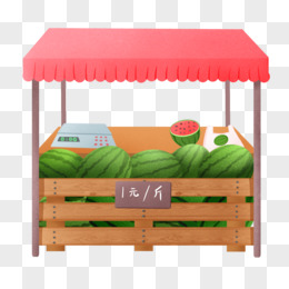 手绘路边摊卖西瓜面口元素