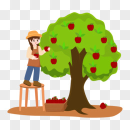 矢量人物摘苹果免抠元素