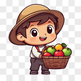卡通风格农民形象拿着水果篮子的元素