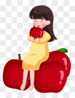 平安夜之手绘卡通女孩抱着苹果
