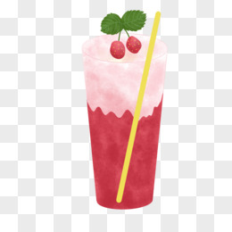 卡通手绘鲜榨草莓汁元素