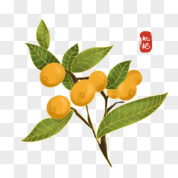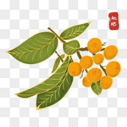 卡通结满果实的枇杷树枝元素