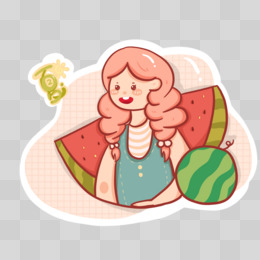 卡通清新女孩夏季西瓜元素水果