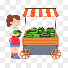 卡通水果店卖西瓜插画素材