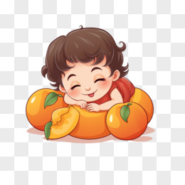 卡通人物和桃子创意结合免抠素材
