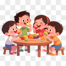 手绘卡通一个木碗里放着香蕉水果捞免抠元素