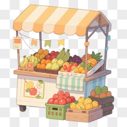 卡通手绘风格水果路边摊免抠元素
