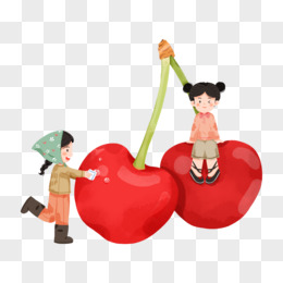 女孩坐在车厘子上微景观元素