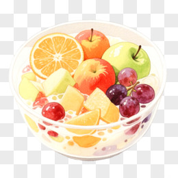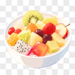 手绘卡通一个白碗里放着芒果火龙果水果捞免抠元素