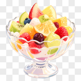 手绘卡通一个玻璃碗里放着芒果丁和蓝莓水果捞免抠元素