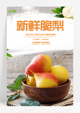 干净 清新新鲜脆梨新鲜梨子新鲜水果海报梨子海报展板
