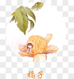 手绘插画秋季水果吃柑橘微景观免抠素材