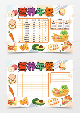 彩色营养午餐蔬菜水果扁平插画简约手抄报可爱