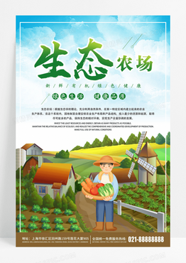清新手绘绿色健康有机果蔬生态农场促销海报