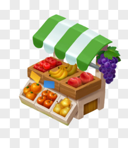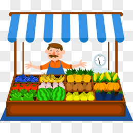 一组手绘卡通各式各样的摆摊套图之卖水果免抠元素