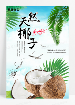 新鲜天然椰子果汁水果美食促销海报