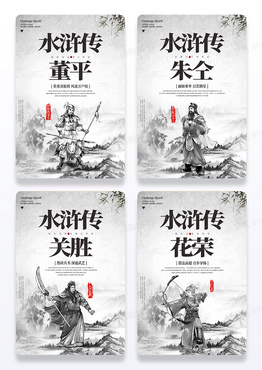 手绘写实三国演义水浒传三顾茅庐场景元素