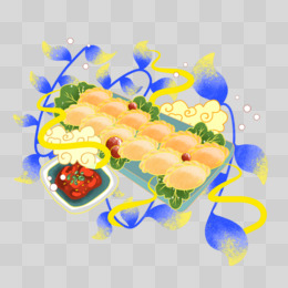 手绘插画风饺子和汤圆鸳鸯锅元素