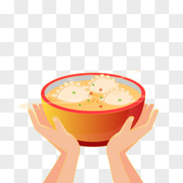 手绘冬至小女孩开心的吃饺子汤圆插画元素