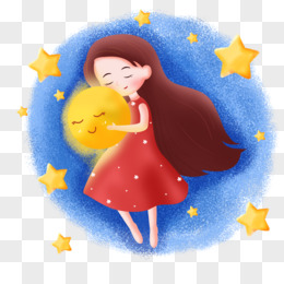 睡眠日之手绘卡通女孩抱着月亮睡觉
