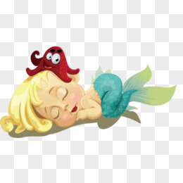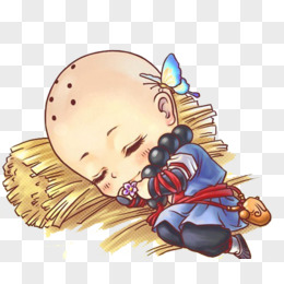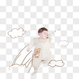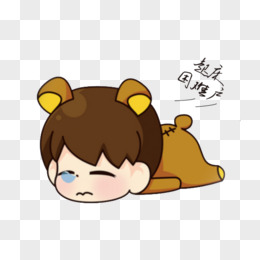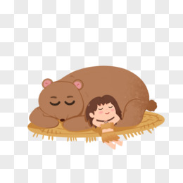 卡通手绘原始人趴在熊身上睡觉免抠素材
