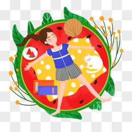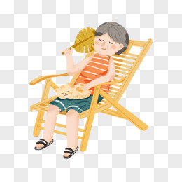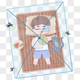 手绘卡通小男孩夏天躺在蚊帐里睡觉插画元素