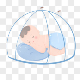 手绘夏季宝宝在蚊帐种睡觉防蚊虫元素