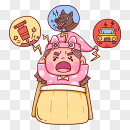 手绘卡通小女孩被噪声污染难以睡觉素材