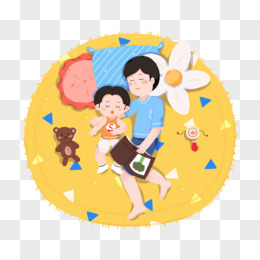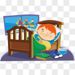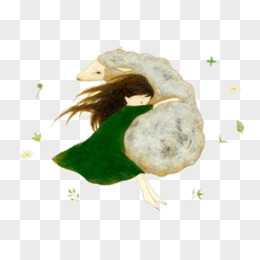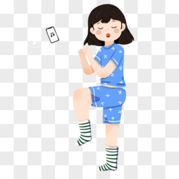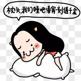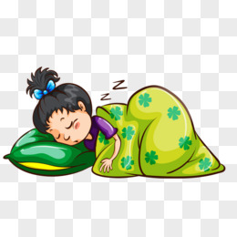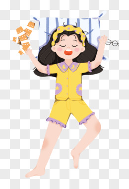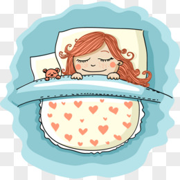 手绘插画女孩和宠物猫一起睡觉免抠素材