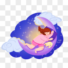 卡通手绘晚上睡觉失眠的女孩免抠元素