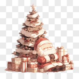 卡通圣诞节靠在圣诞树上睡觉的圣诞老人免抠元素