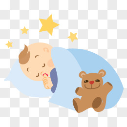 卡通手绘两个小孩躺草地睡觉免抠素材