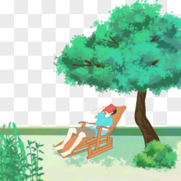 矢量拟人动物狗熊再树下乘凉吃西瓜
