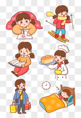 一组卡通男学生寒假生活作息表套图系列一免抠元素
