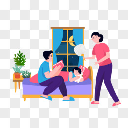 卡通手绘深夜爸爸读小故事哄孩子睡觉素材