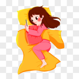卡通手绘女孩睡觉玩手机元素