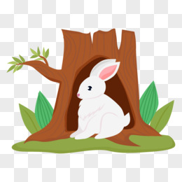 矢量卡通树洞里睡觉休息的小兔子素材