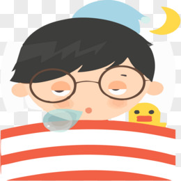 卡通插画风小男孩躺着床上睡觉免抠元素