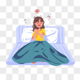 夏季女生躺床上被蚊子咬插画元素