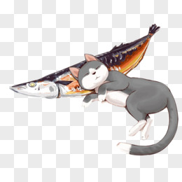 小猫和鱼睡觉素材图片