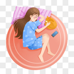 卡通女孩假期放假睡懒觉免抠元素